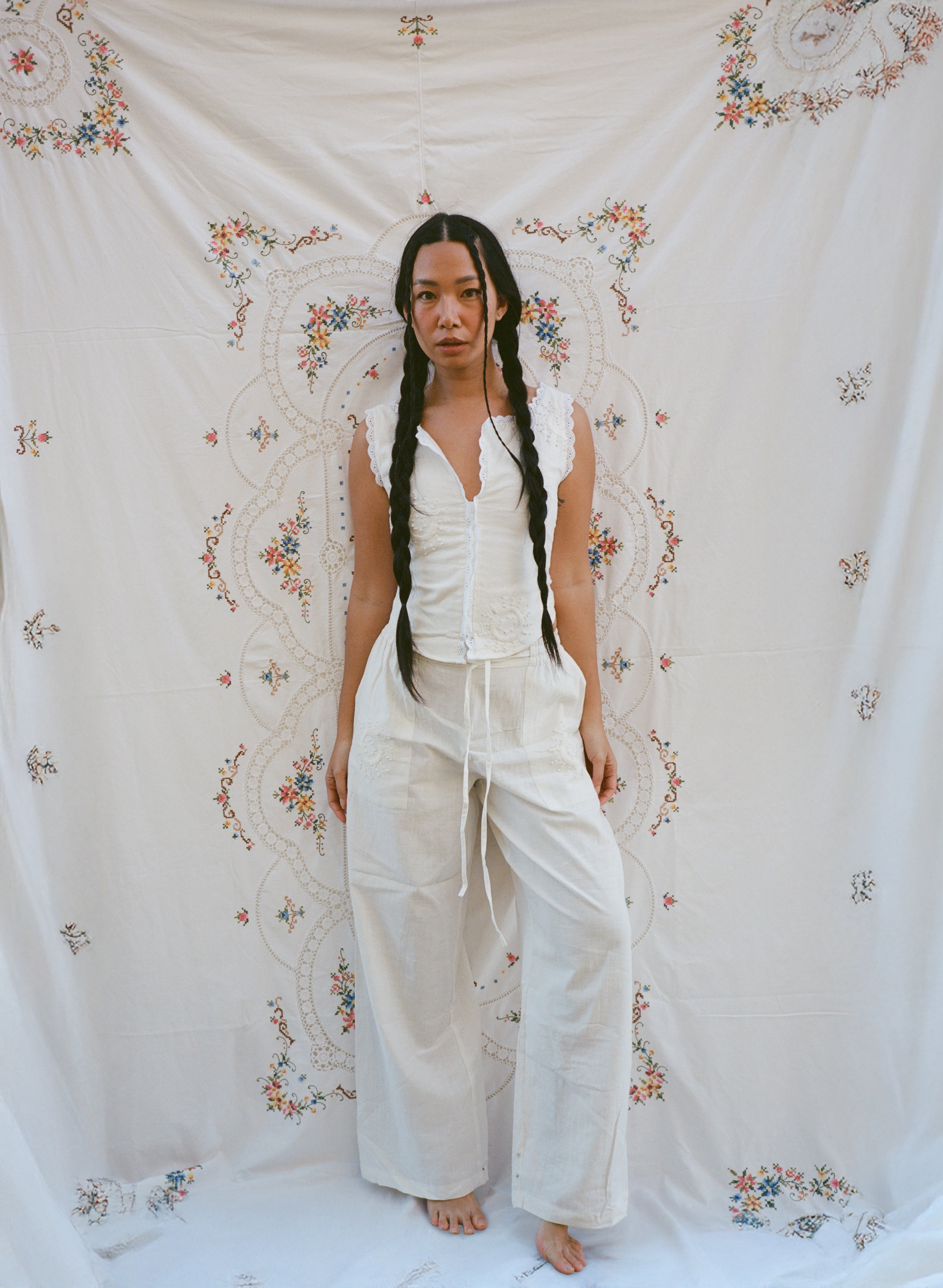 Top Girasoles blanco